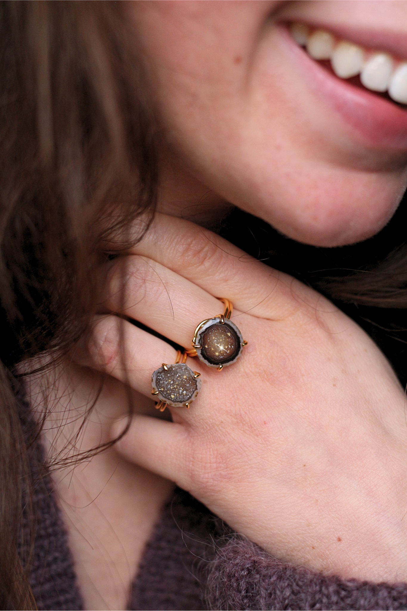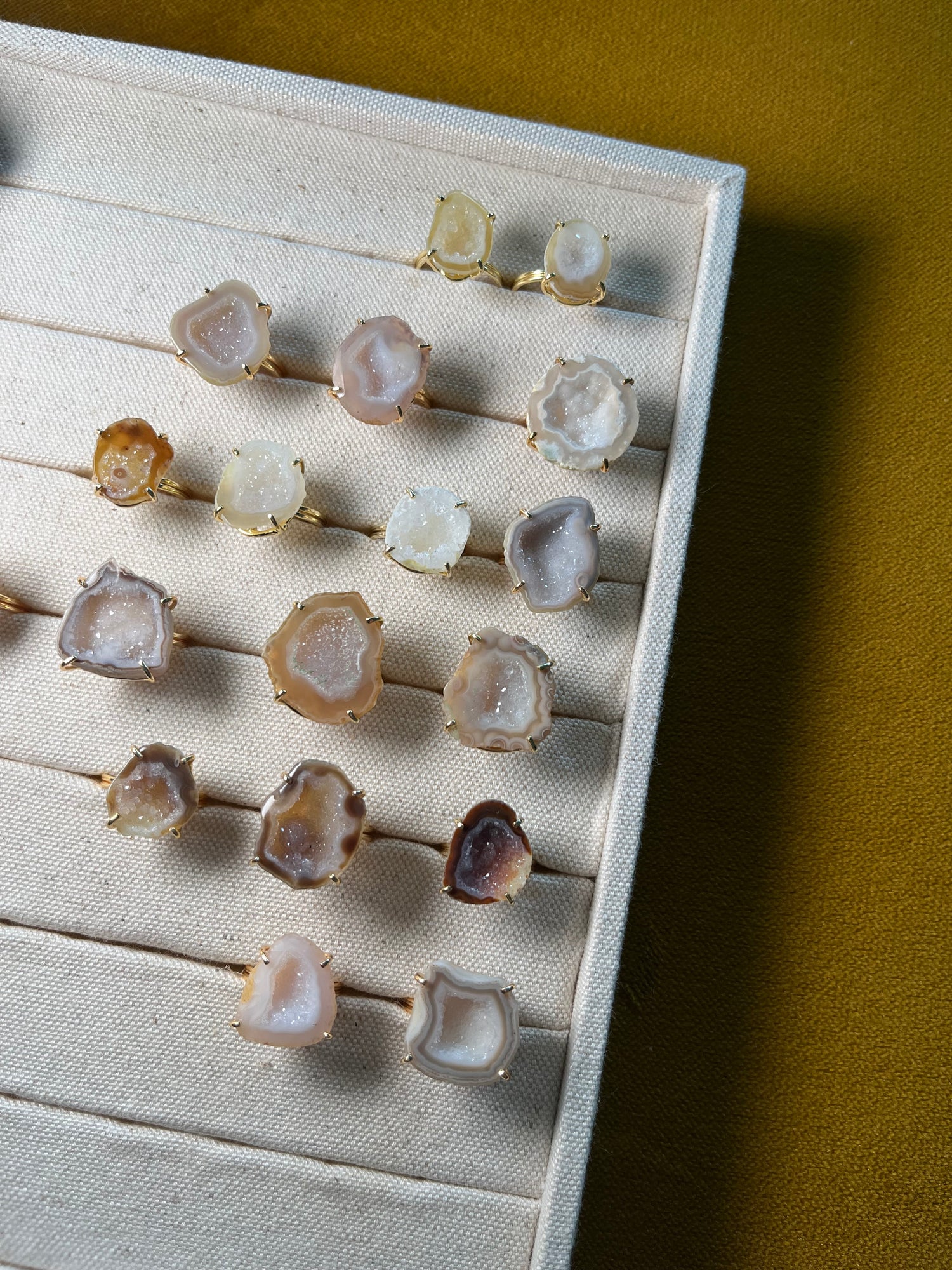 druk, via minuscule 'poriën' die in vulkanisch gesteente zitten. Een agaat geode doet er duizenden jaren over om de unieke kristallen te